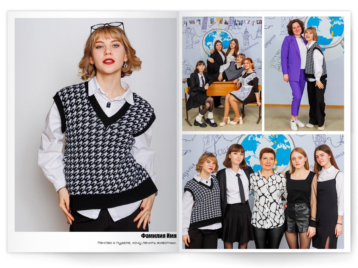 • Разворот с твоим портретом на всю страницу и от 2 до 4 фото на выбор