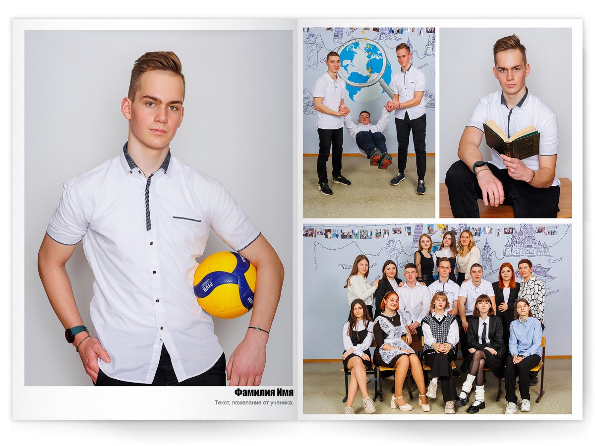 • Съёмка альбома в фотостудии от +750 ₽/человек (точная стоимость зависит от количества учеников и выбранной фотостудии)